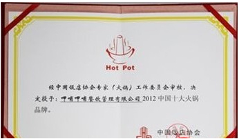 呷哺呷哺獲評“2012中國十大火鍋品牌”