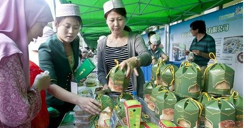 8月19日,參觀者在北京第五屆清真美食文化節上選購清真特色美食“香豆烤鍋”。 當日,北京第五屆清真美食文化節在北京市牛街開幕,近30家特色清真餐廳參加此次美食節,東來順、護國寺、南來順、烤肉宛等企業都攜“鎮店名菜”亮相牛街。