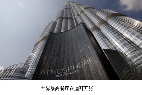 全球最高的餐廳At.mosphere 已經在世界最高建筑 -- 哈利法塔 (Burj Khalifa) 開業了。