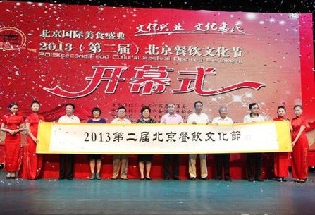 2013年8月16日在什剎海劇場(chǎng),由北京市商務(wù)委員會(huì)主辦、北京市餐飲行業(yè)協(xié)會(huì)和“易淘食”聯(lián)合承辦的“第二屆北京餐飲文化節(jié)”開幕式隆重舉辦。今年的餐飲文化節(jié)以“文化興業(yè)、文化惠民”為主題,將通過(guò)舉辦系列活動(dòng),真正讓“餐飲文化”走入餐飲市場(chǎng)、走上大眾餐桌。