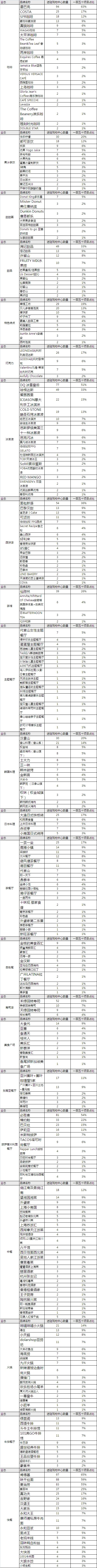 聯(lián)商網(wǎng)消息:現(xiàn)在的購物中心,越來越脫離以“購物為中心”了,餐飲和休閑娛樂等比例越來越高。下面是各個餐飲品牌,在150個在調(diào)查的購物中心的數(shù)據(jù),希望能給您做個有益的參考。