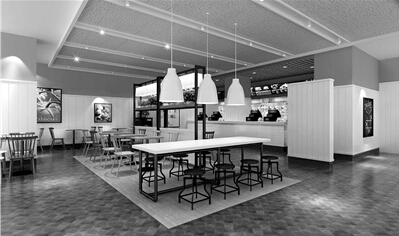 據了解,除煥然一新的用餐環境(右圖)和店面設計,本次肯德基全新變革還包括菜單大革新、全新員工制服、新的產品包裝和數字媒體方面的新嘗試等。