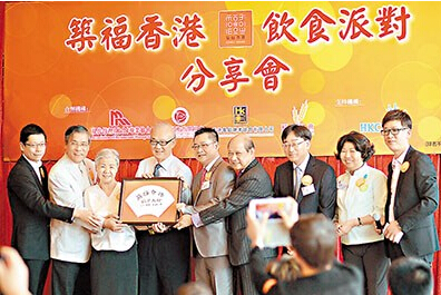 筑福香港飲食派對(duì)分享會(huì)上,賓主樂(lè)也融融地合照。來(lái)源:香港《文匯報(bào)》