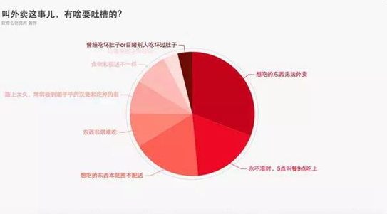 「好奇心研究所」此前做過一次“叫外賣這事兒,有啥要吐槽的?”的投票,我們收獲了共 1871 次表態,結果表明:對外賣實際口味的投訴遠遠少于對幻想中的外賣的憧憬——30.7% 的投票是在抱怨想吃的東西無法外賣;17.7% 在抱怨所在區域內可選外賣太少,想吃的東西都不在配送范圍內。