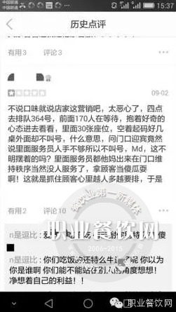 而讓宋女士意想不到的是,一次由感而發(fā)的差評卻換來了言語攻擊。記者在大眾點評網(wǎng)上看到,一位名叫“n是逗比”的網(wǎng)友接連給宋女士留了兩次言,其中一次留的是“你們吃飯的還XX牛X了呢!你以為你是誰啊?你們能不能站在別人的角度想想!凈想著自己的利益”,另一次則是“愛XX吃不吃,有能耐你別XX來,傻X”!