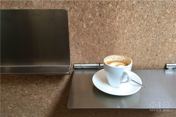 好的收納是為了清爽的視覺效果服務(wù)的,因此店中才能“顯露”出三塊干凈的面:沒有雜物的黑色吧臺,咖啡師身后的白墻,西側(cè)的軟木墻面。