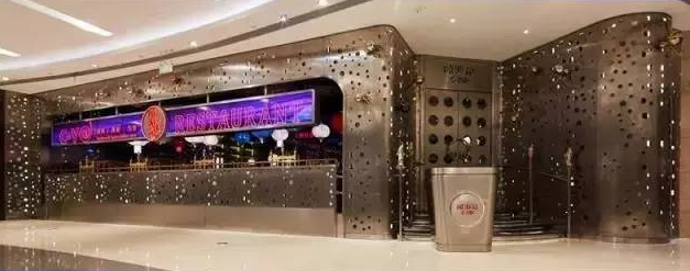 遠(yuǎn)處看像盤踞在商場里的金屬洞穴,外圍用不銹鋼緊緊包裹,墻壁上安置了碩大的金銀兩色蜘蛛。在進(jìn)門處,運用高科技手段,用水幕再現(xiàn)了一個逼真的水簾洞。餐桌上每個蜘蛛都帶上了緊箍咒,這些蜘蛛也成為嘻游記餐廳的標(biāo)志元素。設(shè)計時沒有刻意去塑造西游記的形象,而是用很多插畫來表達(dá)現(xiàn)代想象。翻開菜單就像是翻開一本故事書,菜名都非常有西游記特色,例如“俺老孫最牛”、“女兒國的春夢”、“松茸洋芋紫金缽”等。