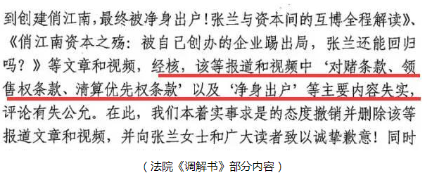 而在昨天,沸沸揚揚了近兩年的“對賭協議”事件出現驚天逆轉,北京朝陽人民法院《調解書》顯示,《新財富》刊發的《俏江南:資本之殤》等數篇報道中對俏江南的“對賭條款、領售權條款、清算優先權條款”以及張蘭“凈身出戶”等主要內容失實,并正式向張蘭道歉。