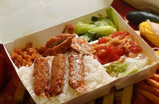 就在觀察期間,廚房內的一幕讓記者大吃一驚。透過取菜窗口,記者看到一穿白色上衣的員工將一鍋炒菜倒入一個方盆,隨后端起一盆米飯,用筷子夾著盆里的肉,自顧自地吃了起來。而當前臺遞來訂單后,他換用大勺從他剛夾肉的方盆中?出兩勺盛入外賣盒,打包裝好后,又換回筷子大快朵頤。記者駐足的近半小時內,發現店內另一藍衣員工的做法如出一轍,員工午餐都是直接用筷子在外賣大鍋中撿拾。