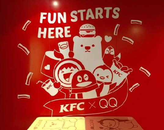 在肯德基QQ主題店內,無論是露臺、支柱、餐桌、還是墻上的裝飾畫,全部融入QQfamily元素。比如,餐桌上分布有QQ閱讀、QQ手游、QQ音樂、吃喝玩樂等二維碼,消費者掃描就可以參與到各個環節中。針對年輕人喜歡自拍的特性,店中設置了自助照片打印機,消費者可現場免費打印照片。