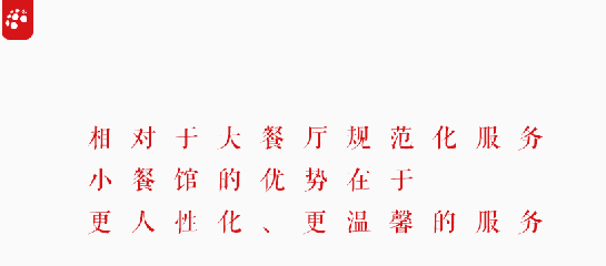 其實(shí)面對(duì)餐飲市場(chǎng)上的競(jìng)爭(zhēng),各位小餐館的經(jīng)營(yíng)者們不但要把握好大方向還要把各個(gè)細(xì)節(jié)都做到客戶心坎里,這樣才能讓自己的小店紅紅火火。