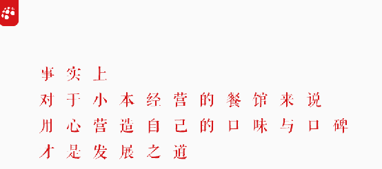 好口碑的形成一向離不開自己家菜品的口味保證,小餐館拼不了高級(jí)營(yíng)銷,如果連菜品口味都不追求的話,那基本就無(wú)望了。