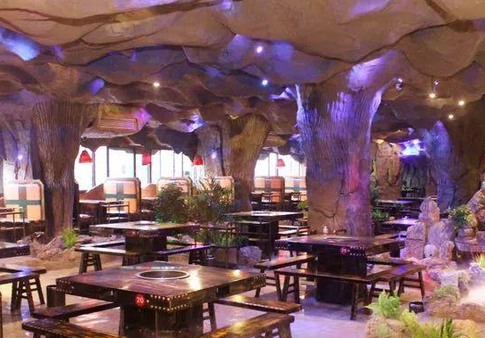 (山水溶洞火鍋內部裝修如溶洞景區)