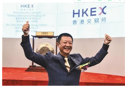 9月26日上午,海底撈董事長張勇、首席運營官楊利娟在港交所敲鑼,海底撈正式上市。在敲鑼后的一瞬間,張勇捂著耳朵大笑。